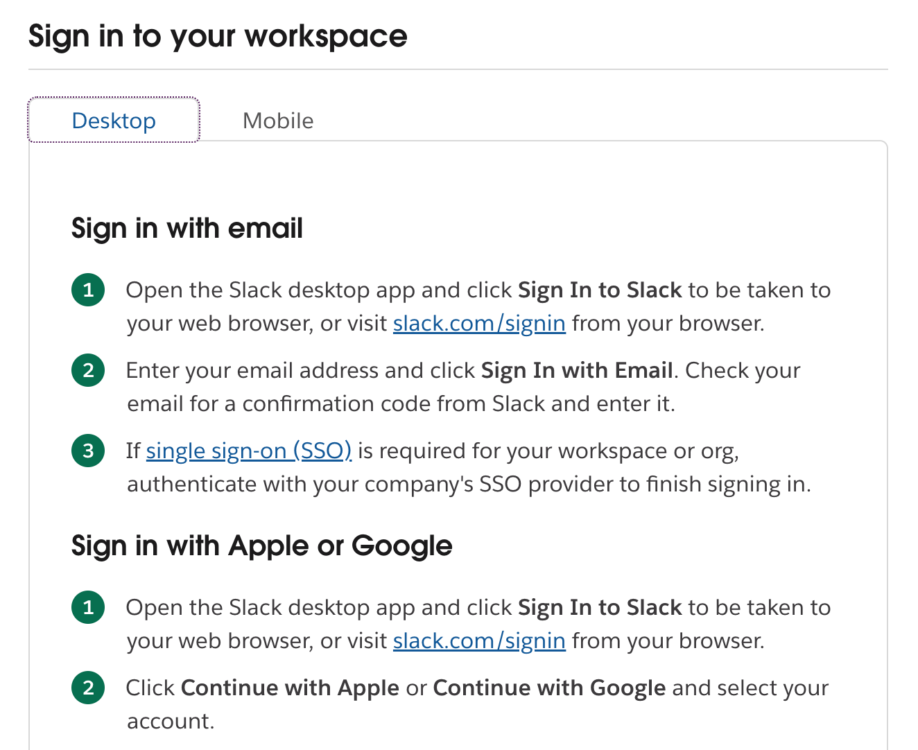 If you are still having issues signing into Slack, please refer to their detailed help article.